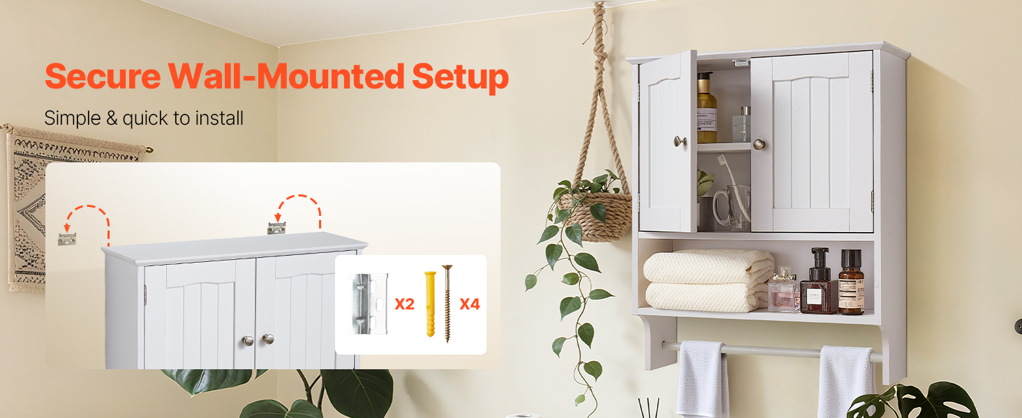 Táto nástenná kúpeľňová skrinka má bezpečnú a stabilnú montážnu konštrukciu, je doplnená podrobným návodom na použitie a kompletnou sadou náradia. Na jednoduchú inštaláciu nie sú potrebné žiadne zložité operácie. Skrinku môžete rýchlo namontovať na stenu, či už ide o začiatočníka alebo neprofesionála.