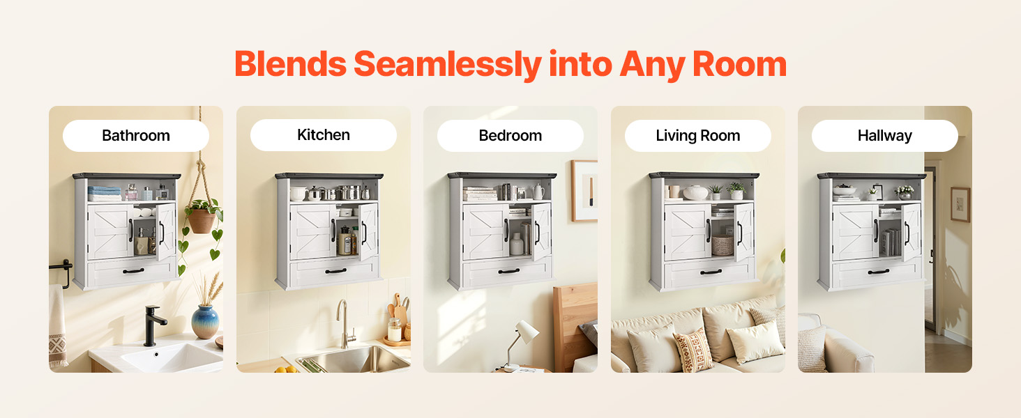 Táto multifunkčná kúpeľňová nástenná skrinka sa bez problémov začlení do kúpeľní, kuchýň, spální, obývacích izieb, chodieb a iných obytných priestorov. Flexibilne sa prispôsobí na ukladanie toaletných potrieb, kuchynských šanónov, organizovanie neporiadku v spálni alebo zdobenie stien obývacej izby.