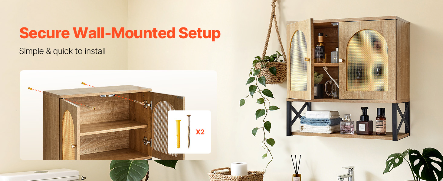 Táto nástenná kúpeľňová skrinka má bezpečnú a stabilnú montážnu konštrukciu, je doplnená podrobným návodom na použitie a kompletnou sadou náradia. Na jednoduchú inštaláciu nie sú potrebné žiadne zložité operácie. Skrinku môžete rýchlo namontovať na stenu, či už ide o začiatočníka alebo neprofesionála.