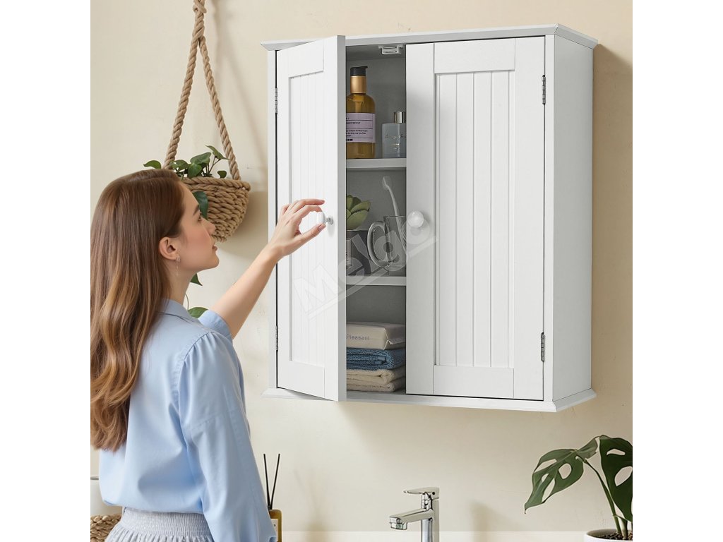 Kúpeľňová nástenná skrinka nad wc 2 dvierka nastaviteľná polica, biela
