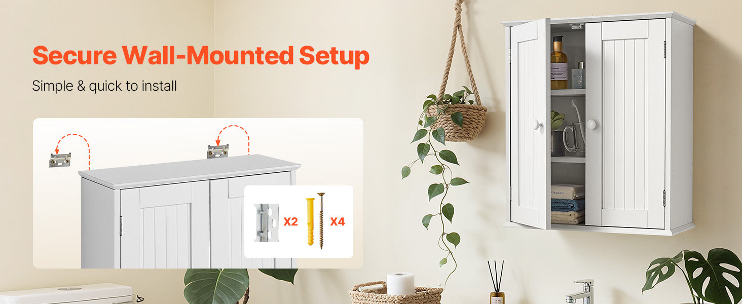 Táto nástenná kúpeľňová skrinka má bezpečnú a stabilnú montážnu konštrukciu, je doplnená podrobným návodom na použitie a kompletnou sadou náradia. Na jednoduchú inštaláciu nie sú potrebné žiadne zložité operácie. Skrinku môžete rýchlo namontovať na stenu, či už ide o začiatočníka alebo neprofesionála.