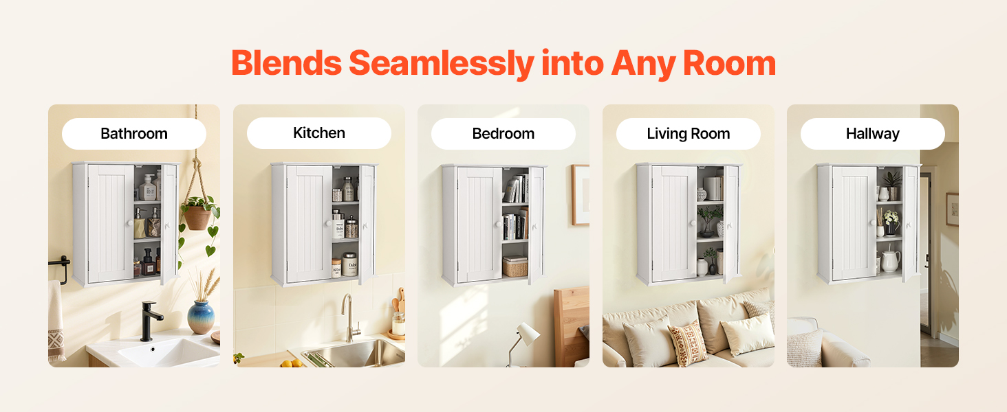 Táto multifunkčná kúpeľňová nástenná skrinka sa bez problémov začlení do kúpeľní, kuchýň, spální, obývacích izieb, chodieb a iných obytných priestorov. Flexibilne sa prispôsobí na ukladanie toaletných potrieb, kuchynských šanónov, organizovanie neporiadku v spálni alebo zdobenie stien obývacej izby.