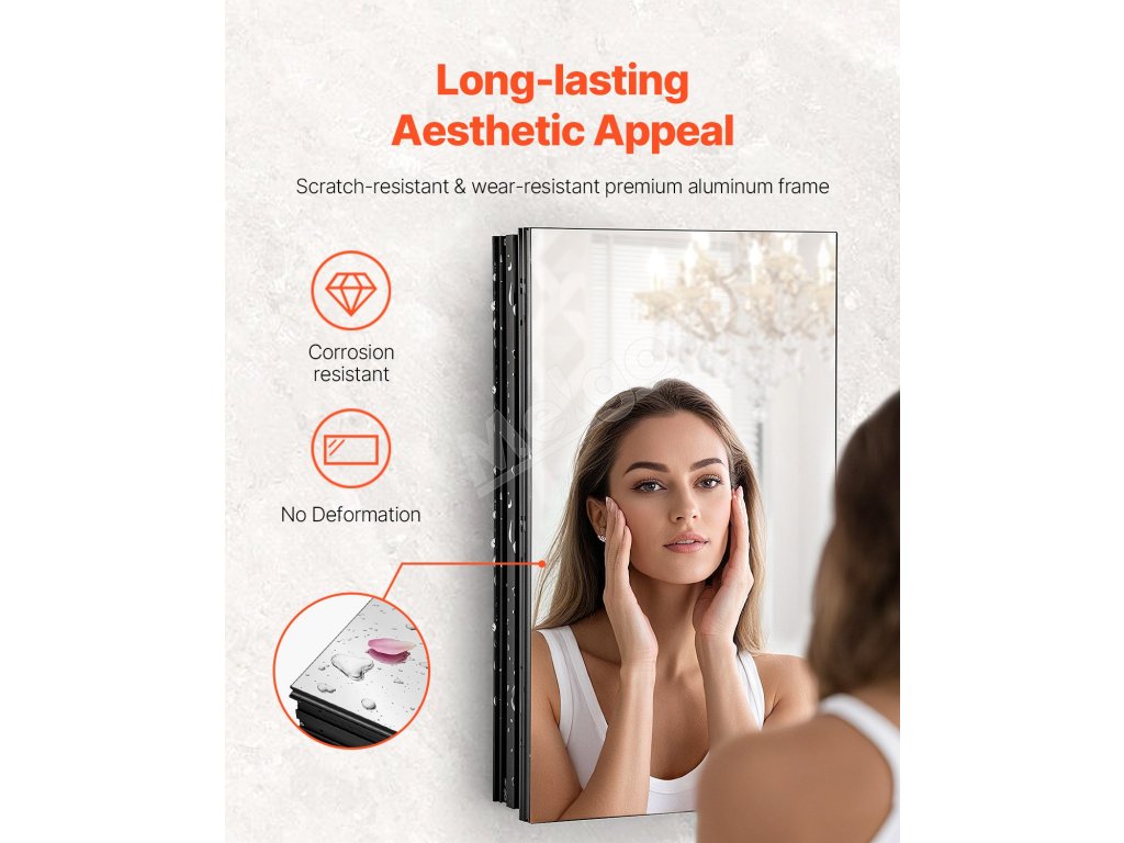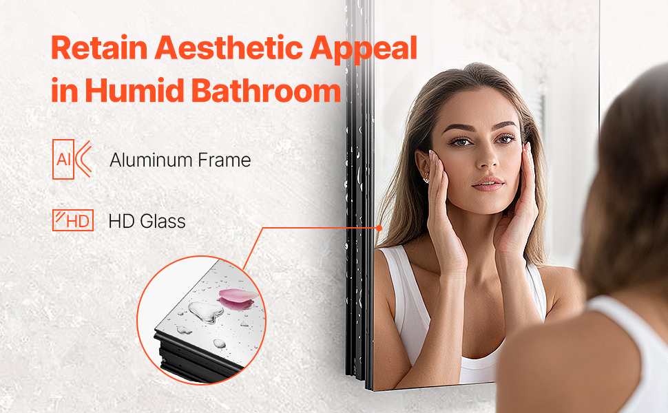Táto zrkadlová lekárnička do kúpeľne je vyrobená z hliníka odolného proti korózii a odolá vlhkosti, chemikáliám a každodennému opotrebovaniu, čím zaručuje dlhodobú trvanlivosť a ochranu.
