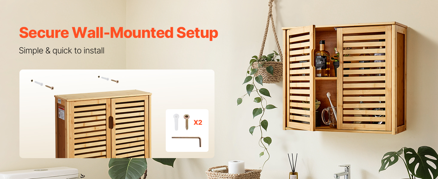 Táto nástenná kúpeľňová skrinka má bezpečnú a stabilnú montážnu konštrukciu, je doplnená podrobným návodom na použitie a kompletnou sadou náradia. Na jednoduchú inštaláciu nie sú potrebné žiadne zložité operácie. Skrinku môžete rýchlo namontovať na stenu, či už ide o začiatočníka alebo neprofesionála.