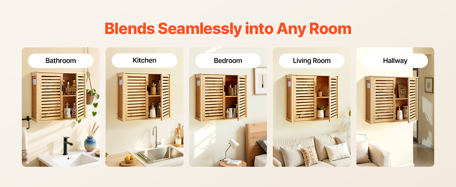 Táto multifunkčná kúpeľňová nástenná skrinka sa bez problémov začlení do kúpeľní, kuchýň, spální, obývacích izieb, chodieb a iných obytných priestorov. Flexibilne sa prispôsobí na ukladanie toaletných potrieb, kuchynských šanónov, organizovanie neporiadku v spálni alebo zdobenie stien obývacej izby.