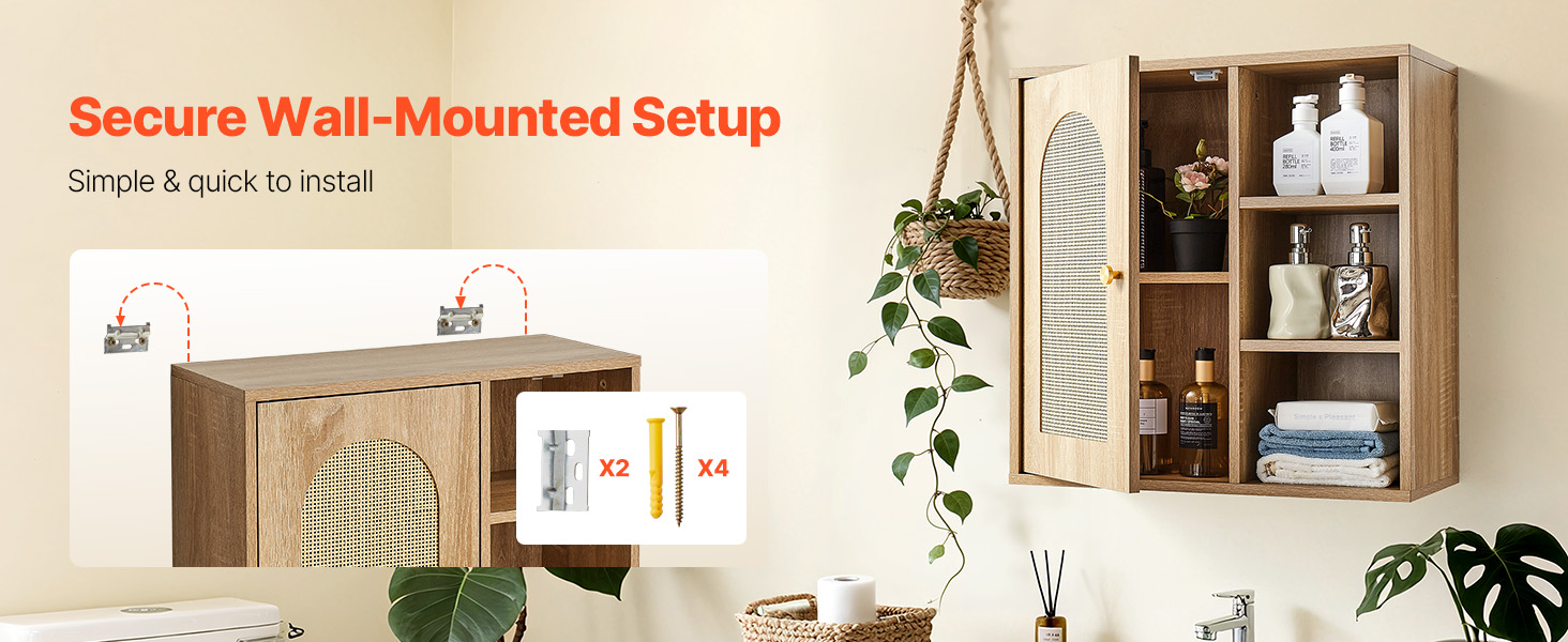 Táto nástenná kúpeľňová skrinka má bezpečnú a stabilnú montážnu konštrukciu, je doplnená podrobným návodom na použitie a kompletnou sadou náradia. Na jednoduchú inštaláciu nie sú potrebné žiadne zložité operácie. Skrinku môžete rýchlo namontovať na stenu, či už ide o začiatočníka alebo neprofesionála.