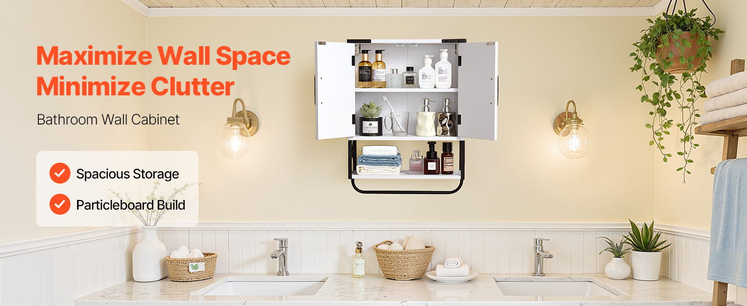 Táto nástenná skrinka do kúpeľne je vyrobená z prvotriednej drevotriesky, je robustná, odolná a atraktívna. Jej priestranný interiér s 3-úrovňovou nastaviteľnou policou maximalizuje vertikálny úložný priestor. Naša kúpeľňová nástenná skrinka spĺňa potreby na uskladnenie rôznych toaletných potrieb a rôznych predmetov.