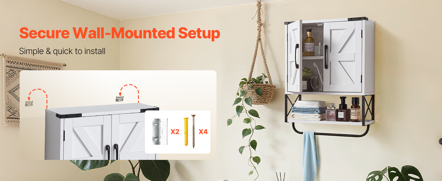 Táto nástenná kúpeľňová skrinka má bezpečnú a stabilnú montážnu konštrukciu, je doplnená podrobným návodom na použitie a kompletnou sadou náradia. Na jednoduchú inštaláciu nie sú potrebné žiadne zložité operácie. Skrinku môžete rýchlo namontovať na stenu, či už ide o začiatočníka alebo neprofesionála.