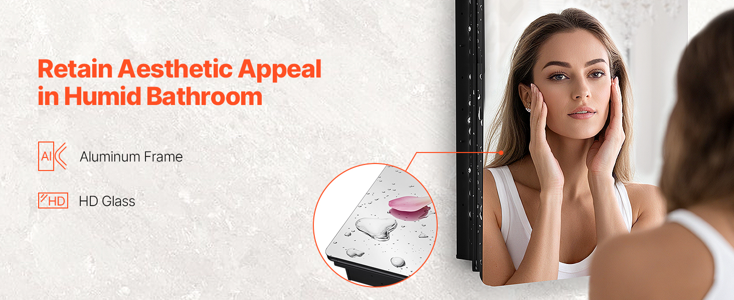 Táto zrkadlová lekárnička do kúpeľne je vyrobená z hliníka odolného proti korózii a odolá vlhkosti, chemikáliám a každodennému opotrebovaniu, čím zaručuje dlhodobú trvanlivosť a ochranu.