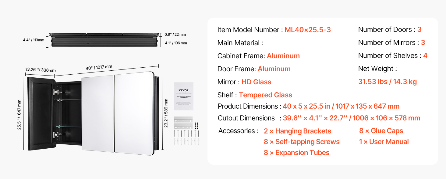 Táto zrkadlová lekárnička do kúpeľne je vyrobená z hliníka odolného proti korózii a odolá vlhkosti, chemikáliám a každodennému opotrebovaniu, čím zaručuje dlhodobú trvanlivosť a ochranu.