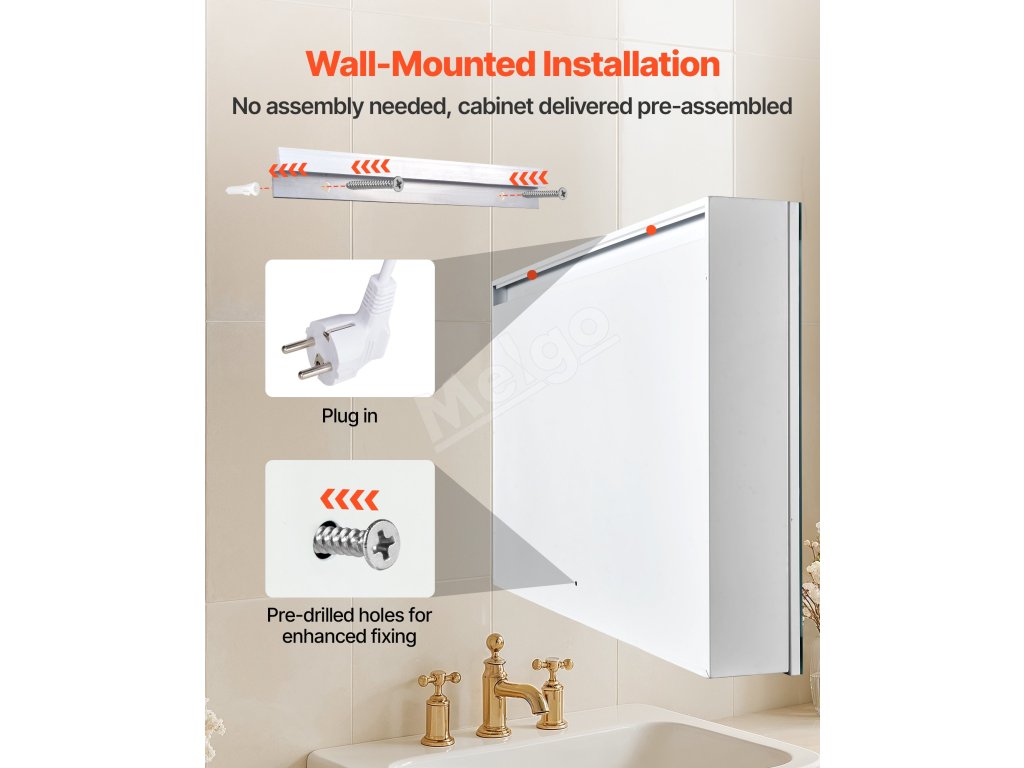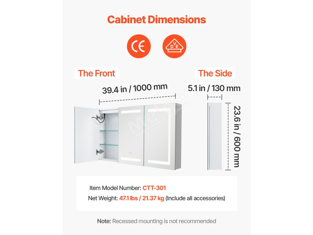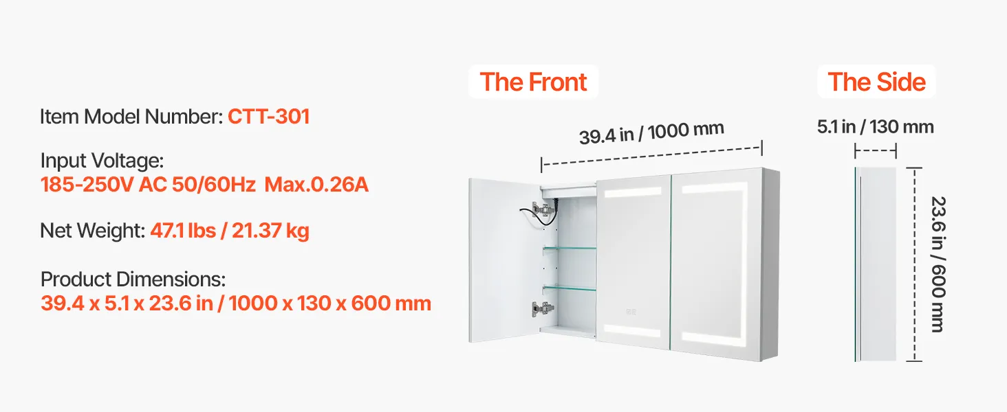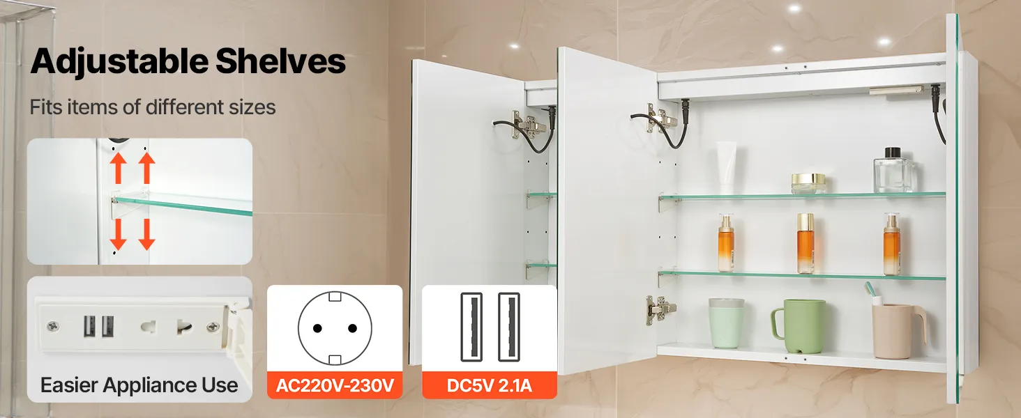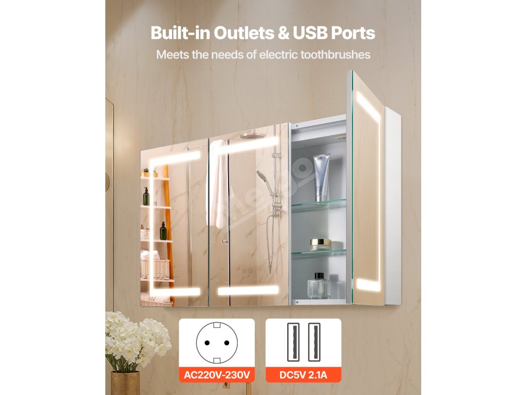 Táto LED zrkadlová skrinka ponúka vysoko svietivé svetlo na líčenie a nízko svietivé teplé svetlo na jemné umývanie v noci. Pamäťová funkcia automaticky vyvolá posledné nastavenie jasu. Spĺňa vaše potreby osvetlenia v rôznych denných dobách
