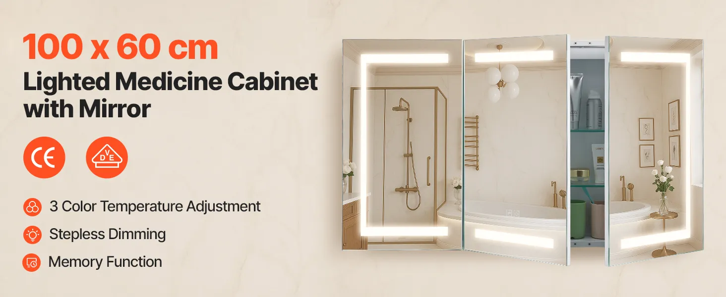 Zrkadlová skrinka do kúpeľne 100×60 cm, 3-farebné stmievateľné led