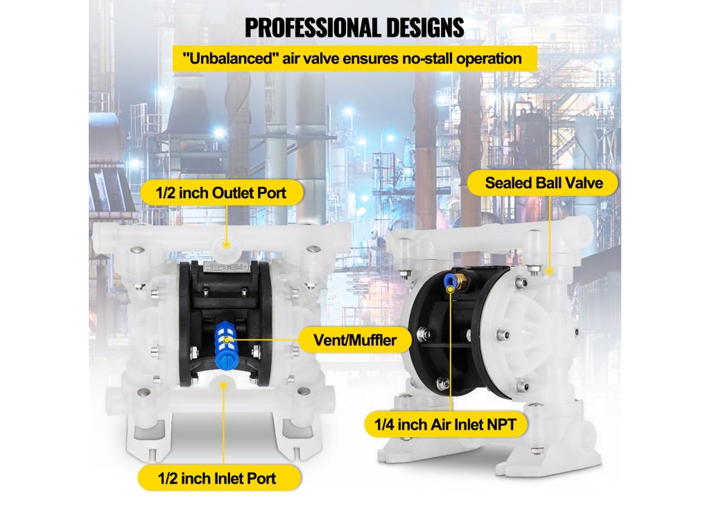 Toto vzduchom poháňané membránové čerpadlo dokáže prečerpávať mnohé viskózne a horľavé kvapaliny vrátane odpadového oleja, alkoholu, hydraulickej kvapaliny, benzínu, nafty, čistiaceho prostriedku, pitnej vody atď.