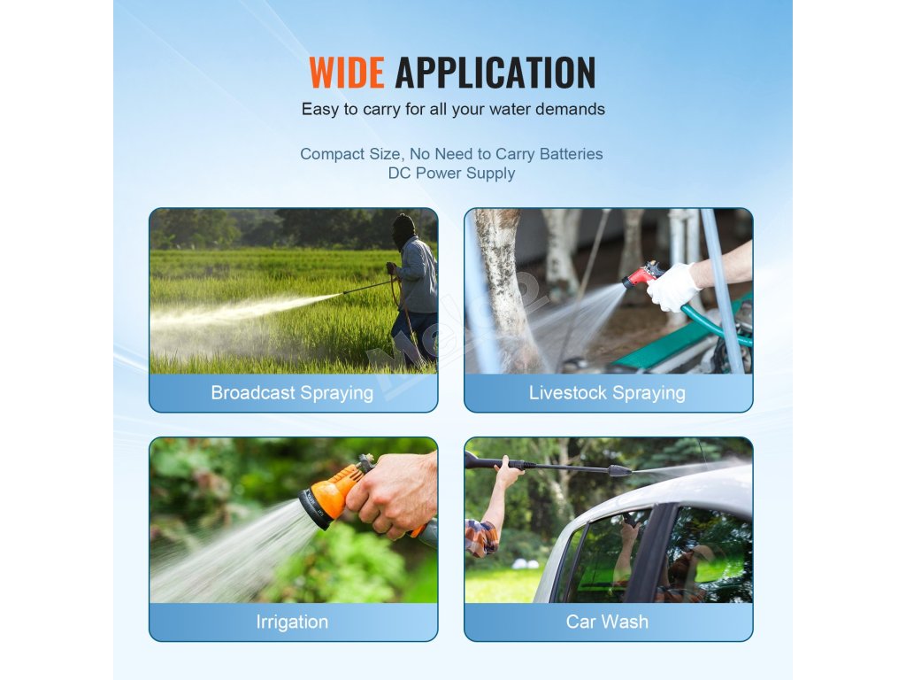 Toto 12 V tlakové čerpadlo na vodu nie je obmedzené na jedno použitie, ale slúži na mnoho účelov, vďaka čomu je schopné vykonávať rôzne úlohy. Jeho silný prietok a nastaviteľný tlak uľahčujú čistenie vozidiel, lodí alebo paluby. Dobre funguje na lodiach, jachtách alebo karavanoch, kde poskytuje stabilnú vodu pre sprchy, umývadlá a iné potreby na palube. Napokon, čerpadlo dokáže premiestňovať kvapaliny aj na veľké vzdialenosti, takže je vynikajúcou voľbou na dopĺňanie nádrží a sudov, čo umožňuje rýchle a jednoduché čistenie.