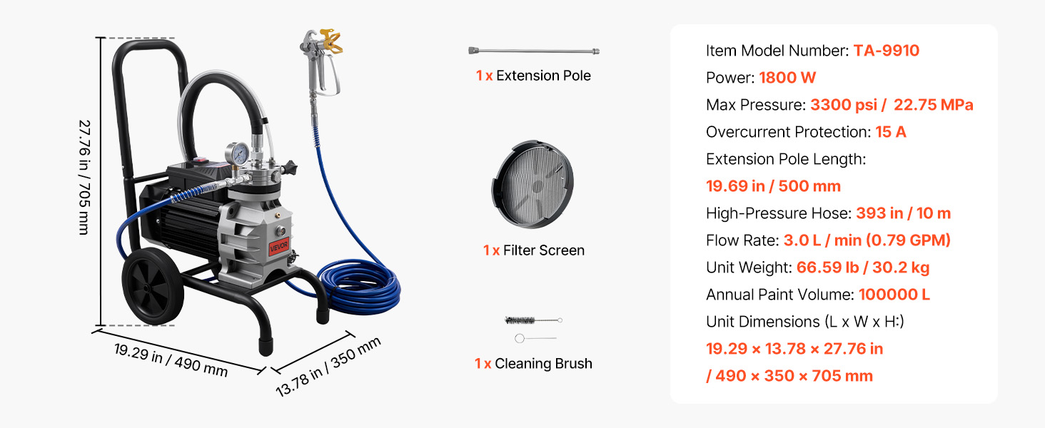 Tento bezvzduchový striekací stroj na farbu s vozíkom, navrhnutý pre konzistentný výstup a hladké pokrytie, vám pomôže dokončiť projekty renovácie a premaľovania s väčšou efektivitou a kontrolou.