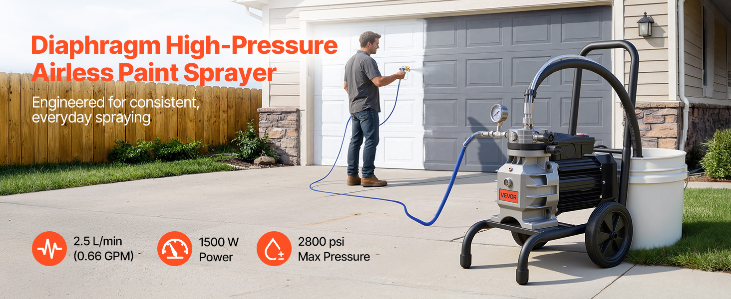 Tento bezvzduchový striekací stroj na farbu s vozíkom, navrhnutý pre konzistentný výstup a hladké pokrytie, vám pomôže dokončiť projekty renovácie a maľovania s väčšou efektivitou a kontrolou.