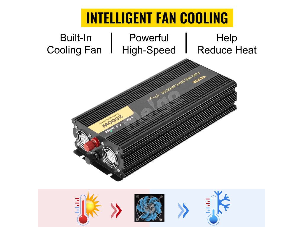 Zažite spoľahlivú konverziu energie s naším 2500W meničom s čistou sínusovou vlnou, ktorý je navrhnutý tak, aby poskytoval čisté striedavé napájanie pre citlivé elektronické zariadenia. Je ideálny na použitie vo vozidlách a účinne premieňa jednosmerný prúd 12 V na striedavý prúd 230 V, čím zabezpečuje optimálny výkon pre notebooky, domáce spotrebiče a ďalšie zariadenia. Jeho vysokorýchlostný chladiaci ventilátor a komplexné bezpečnostné ochrany zaručujú bezpečnú a stabilnú prevádzku v rôznych aplikáciách.