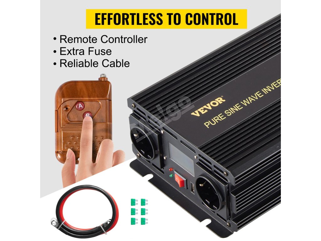 Menič 12 V DC na 230 V AC 2500 W, USB, diaľkové ovládanie, ochrany