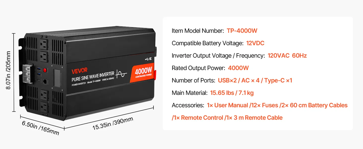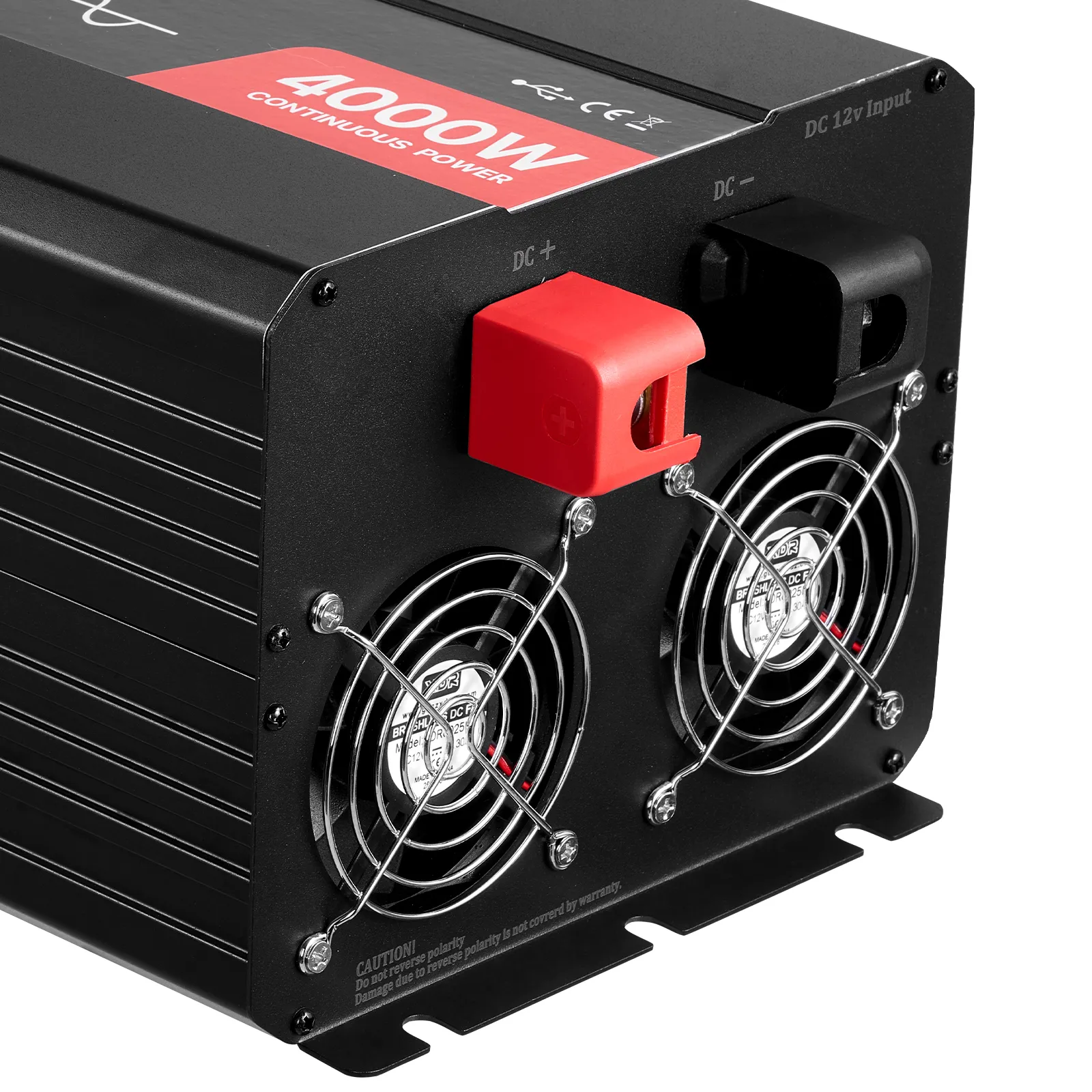 Menič 12V na 230V 4000W čistý sínus, diaľk. ovl., 2 ac, 2 usb, type‑c