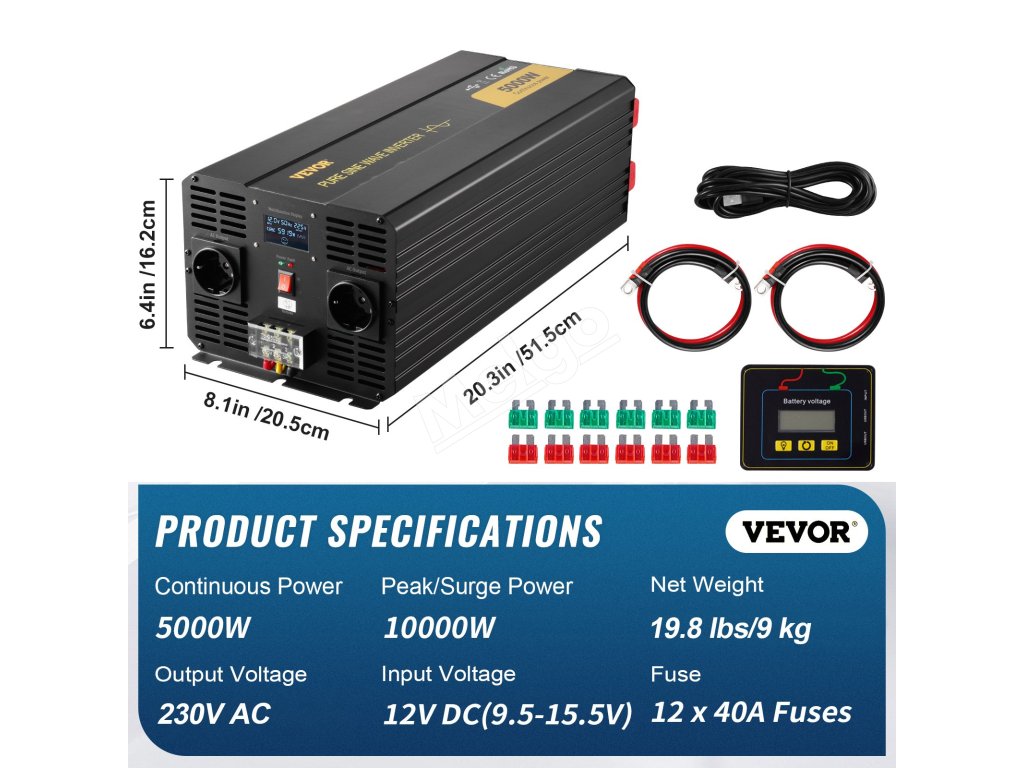 - 5000W striedač s čistou sínusovou vlnou