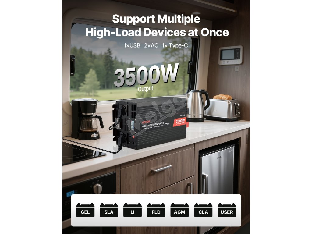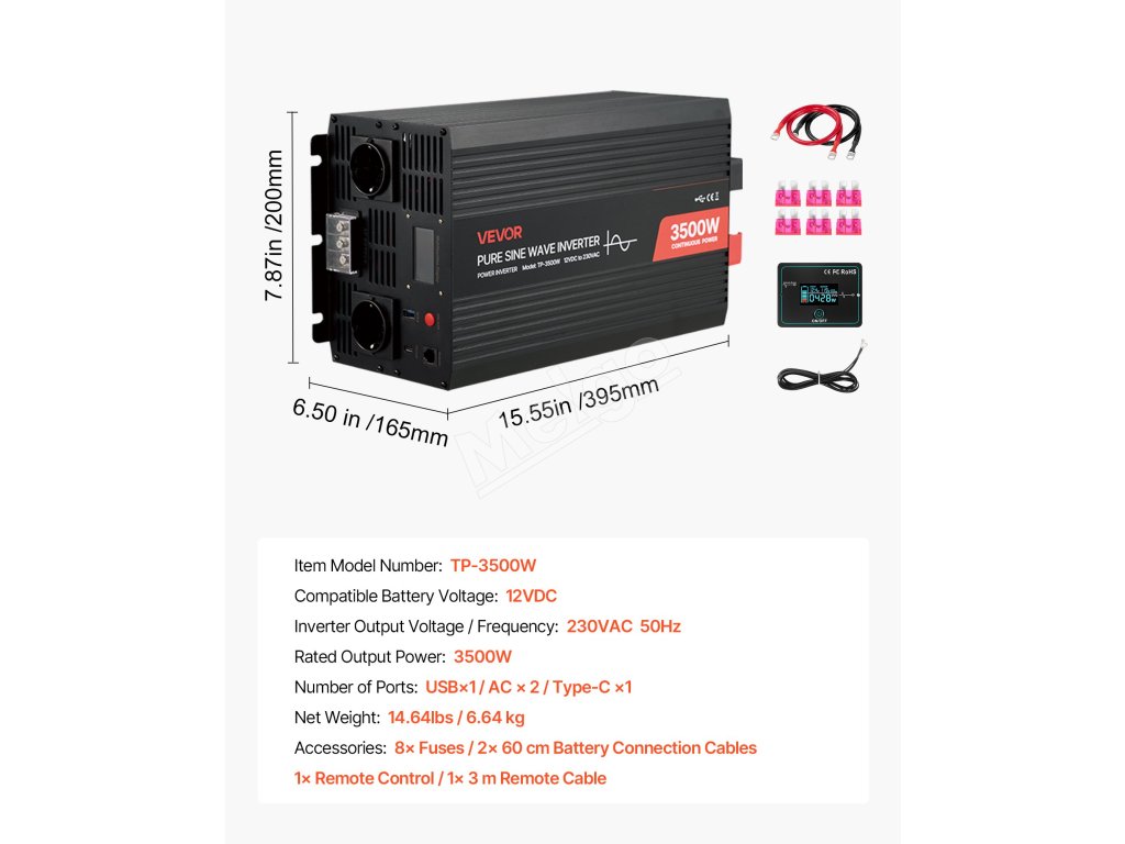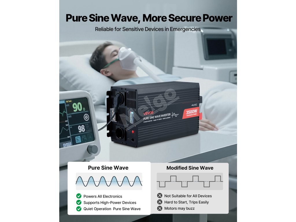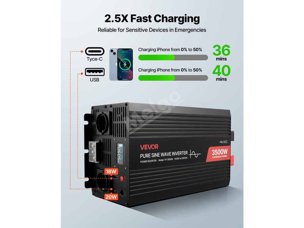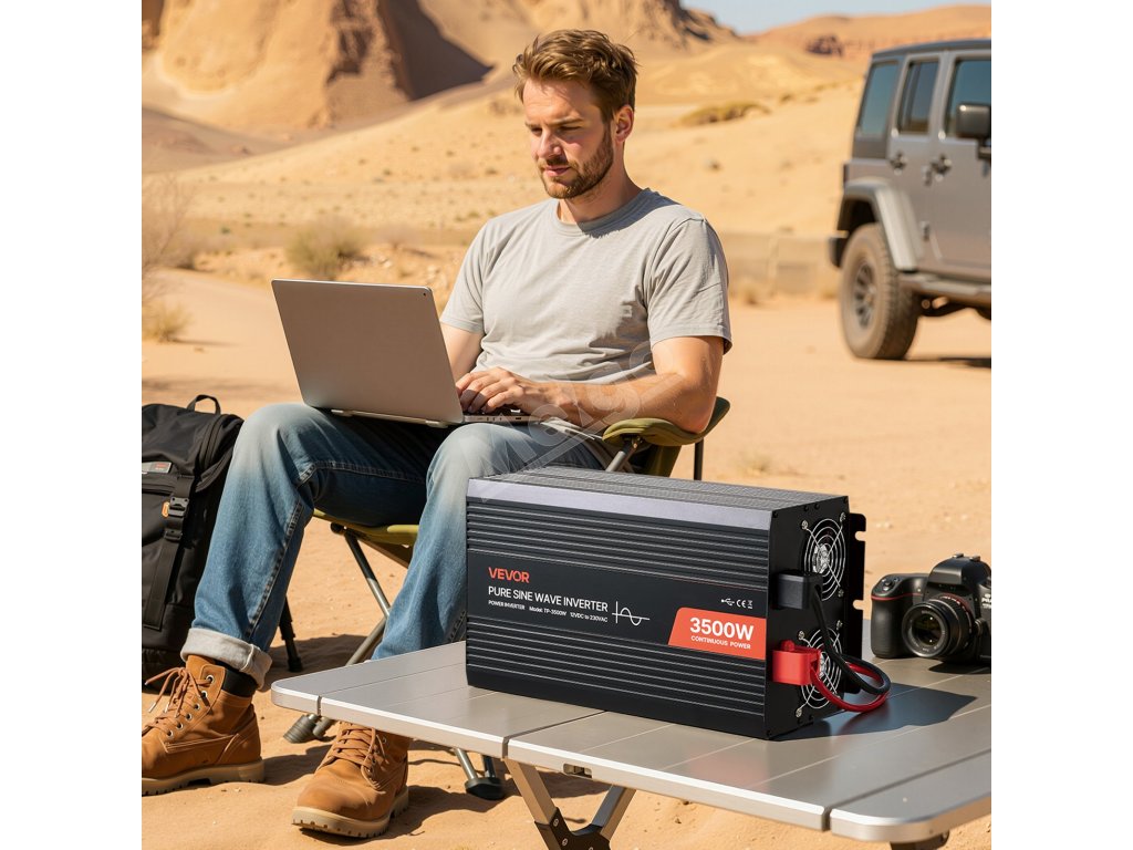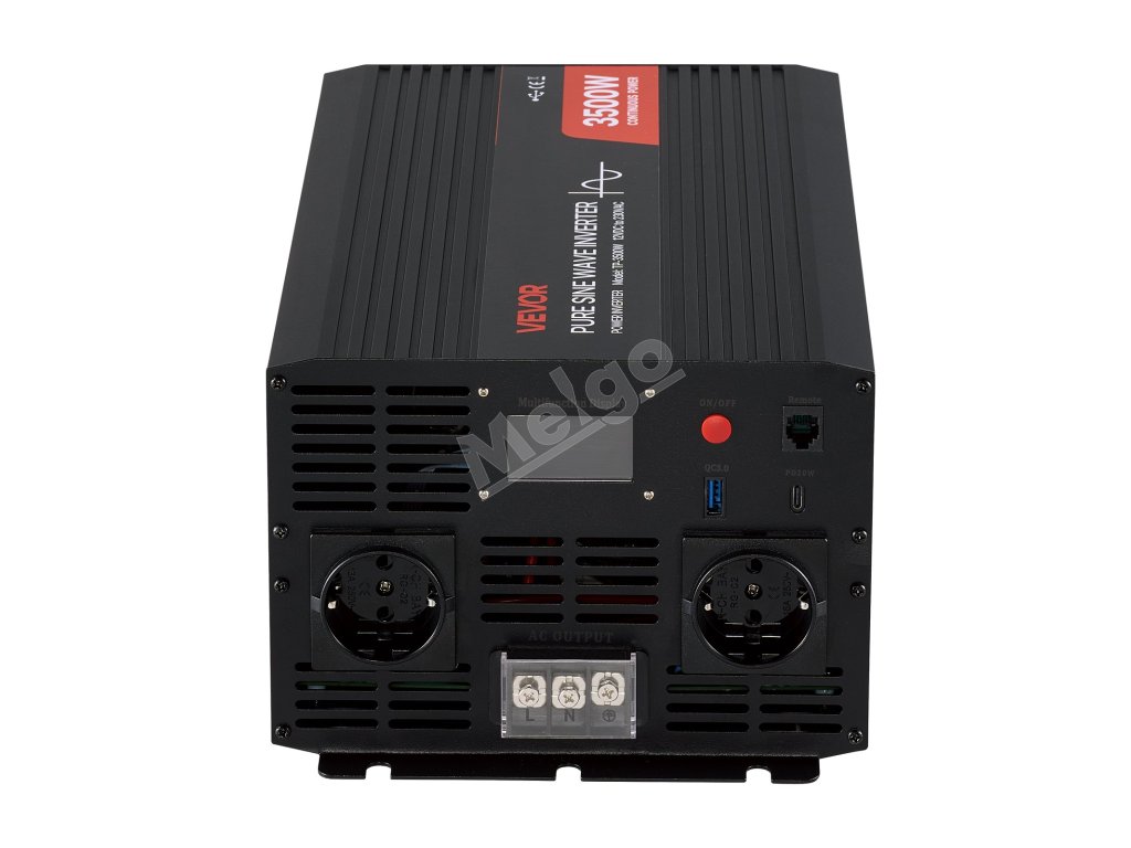 Menič napätia 12V na 230V 3500W čistá sínusová, lcd, 2×ac, usb, usb-c
