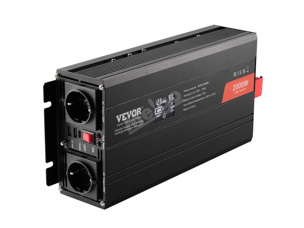 Menič napätia 2000 watt DC 12V na AC 230V, 2× AC, 2× USB, 1× USB‑C