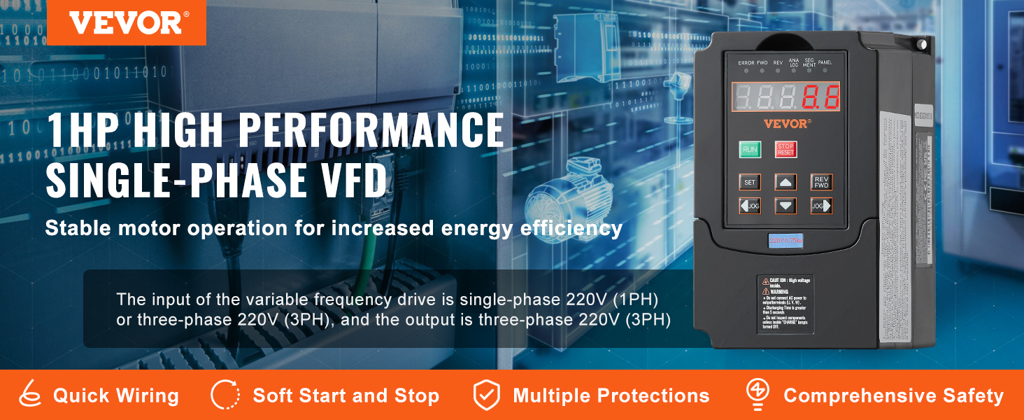 Vstupom frekvenčného meniča je jednofázové 220 V (1PH) alebo trojfázové 220 V (3PH) a výstupom je trojfázové 220 V (3PH). Vďaka jednoduchému zapojeniu, intuitívnemu displeju a komplexným ochranám zjednodušuje prevádzku, zvyšuje energetickú účinnosť a minimalizuje poruchy strojov.