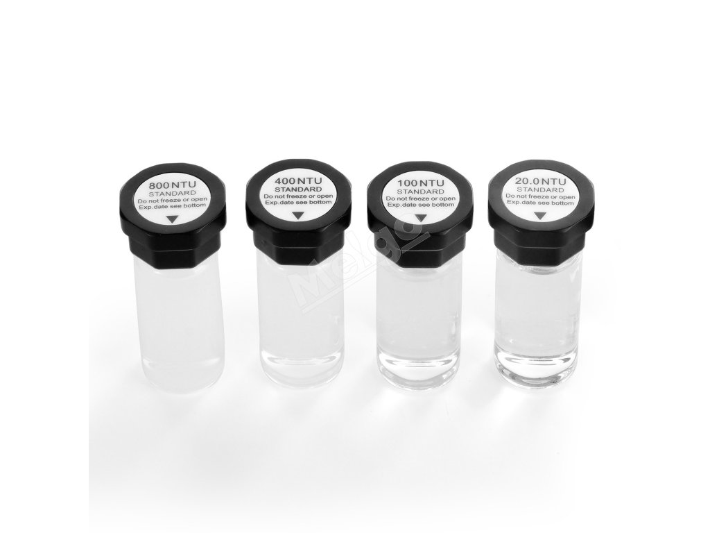 Kalibračný roztok na meranie zákalu sa dodáva v 4-dielnej súprave (20, 100, 400, 800 NTU, každý po 20 ml). Je ideálny na presnú kalibráciu digitálneho merača zákalu.