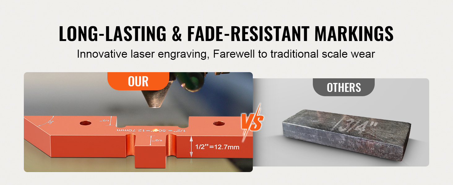 Naše nastavovacie bloky na obrábanie dreva využívajú špičkovú technológiu laserového gravírovania a v porovnaní s tradičnými tlačenými stupnicami sú vybavené značkami, ktoré odolávajú opotrebovaniu a vyblednutiu.