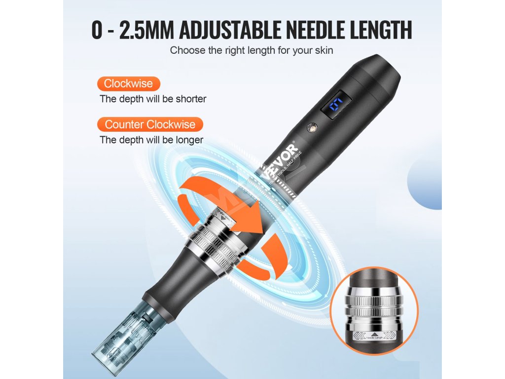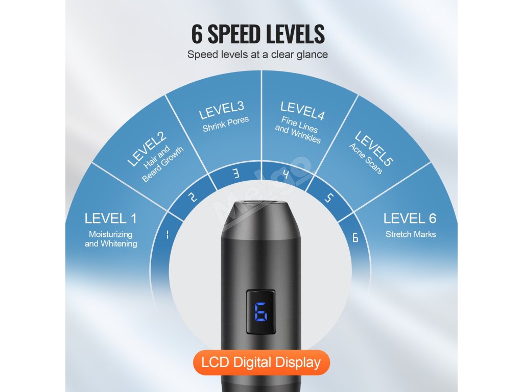 Elektrický dermapen 5×16 ihl kazety, 6 rýchlostí, nast. ihly 0–2,5 mm