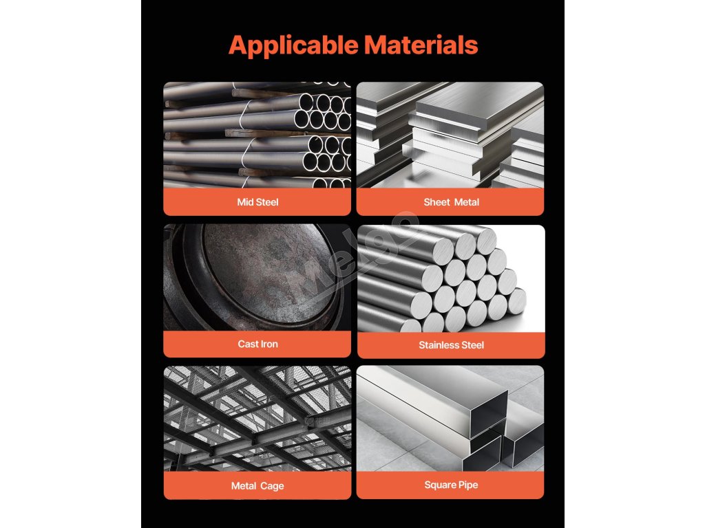 Je kompatibilná s rôznymi materiálmi vrátane mäkkej ocele, nehrdzavejúcej ocele, liatiny, plechu, štvorcových rúrok a kovovej klietky.