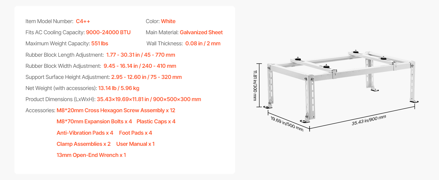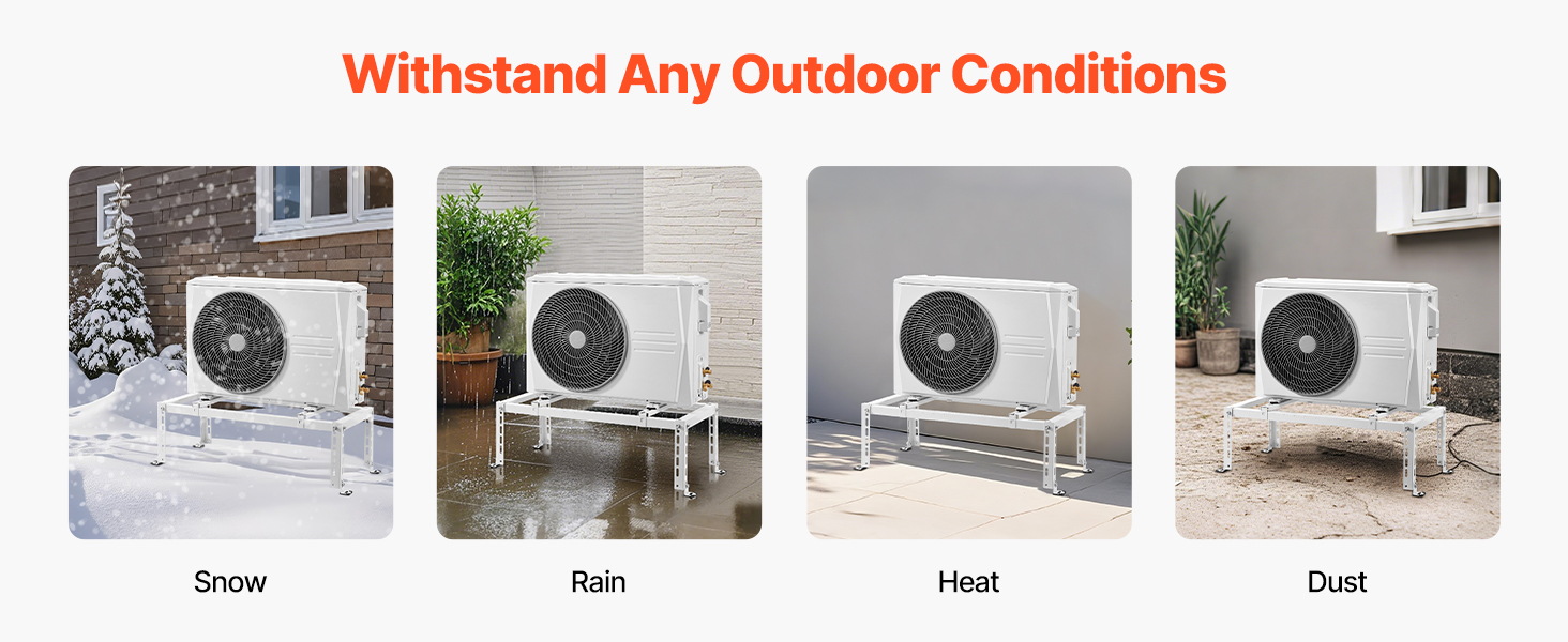 Tento stojan odolný voči poveternostným vplyvom ponúka vynikajúcu stabilitu a funkcie na zníženie hluku, čím zabezpečuje tichú prevádzku a zároveň ľahko zvládne aj ťažké zariadenia. Univerzálny dizajn sa hodí pre rôzne klimatizačné jednotky, je jednoduchý na inštaláciu a poskytuje spoľahlivý výkon.