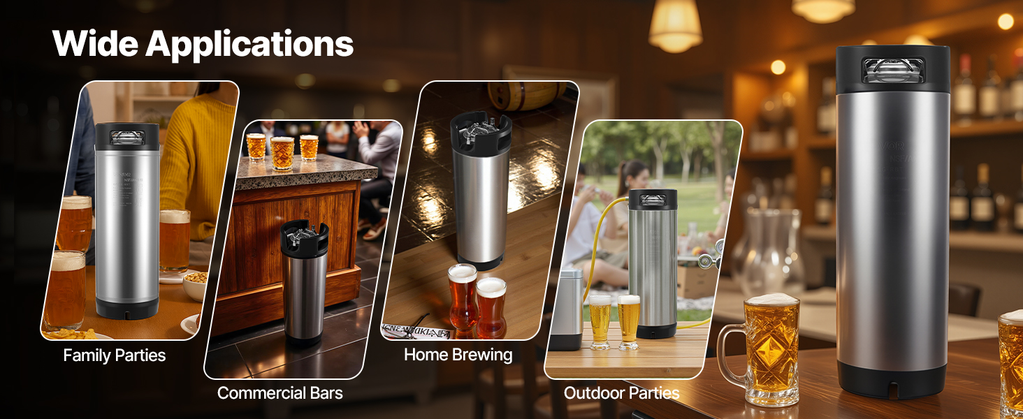 Či už ho použijete ako stáčací stroj v domácom pivovare, alebo si ho prinesiete na výpravu alebo do kempu, tento pivný sud poskytuje flexibilnú funkčnosť. Konštrukcia typu "uchop a vezmi" podporuje varenie piva v interiéri a vonkajšie potešenie bez potreby ďalších nádob alebo nástrojov.