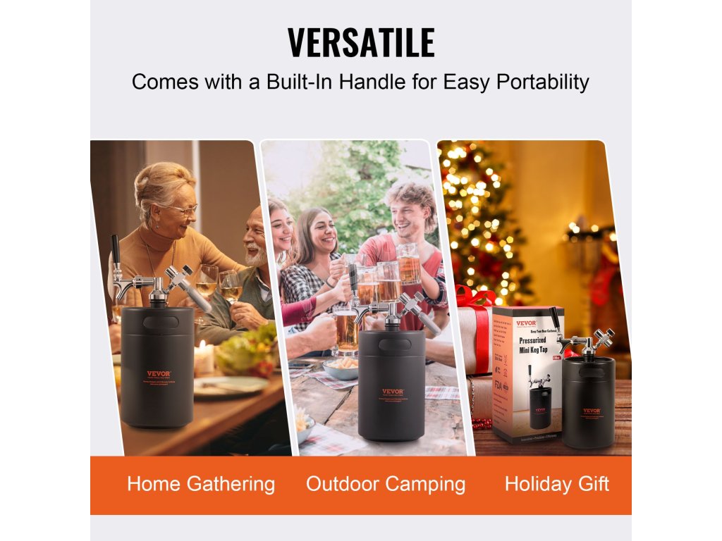 Mini sud na sýtené pivo s objemom 170 uncí a rozmermi 6,9 x 8,3 x 16,6 palca je vybavený pohodlným držadlom na prenášanie, takže je vhodný na domáce stretnutia alebo kempovanie v prírode.