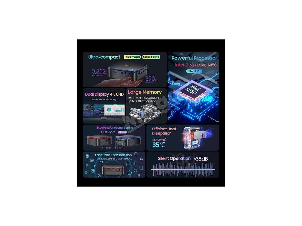 Blackview MP60 Mini PC, Intel N150, 16GB RAM, 512GB SSD, Dual-band WiFi, Bluetooth 4.2