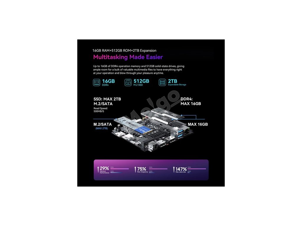 Mini PC Blackview MP60 poháňaný procesorom Intel N150 a 16 GB operačnej pamäte DDR4 ľahko zvládne vašu každodennú prácu—od zložitých tabuliek a nespočetných kariet prehliadača až po videokonferencie. SSD disk PCIe s kapacitou 512 GB poskytuje bleskurýchly štart systému a rýchly prístup k súborom, čím zabezpečuje plynulú a rýchlu odozvu pre všetky potreby vašej domácej kancelárie.