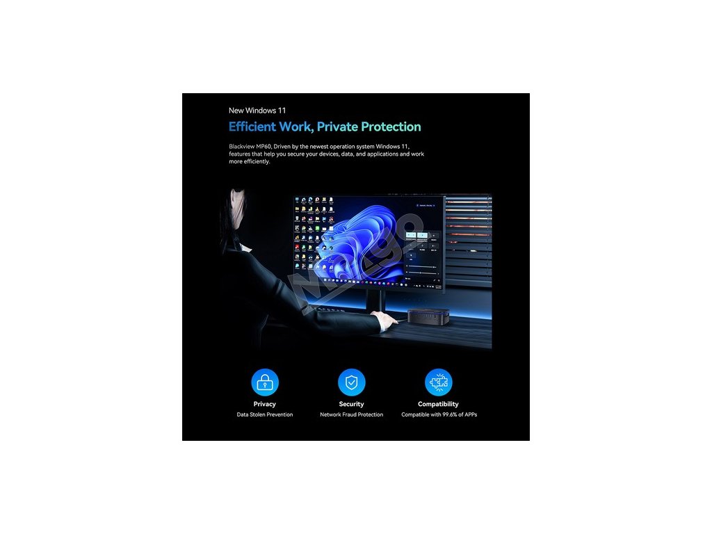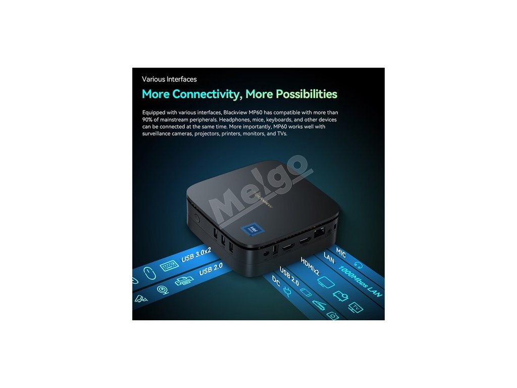 Blackview MP60 podporuje duálny výstup HDMI 4K@60Hz, čo vám umožní rozšíriť pracovnú plochu na dva displeje pre pohlcujúci multitasking. Tento minipočítač, ktorý je ideálny na finančnú analýzu, kreatívny dizajn, programovanie alebo jednoducho na sledovanie filmov v Ultra HD rozlíšení, poskytuje ohromujúcu vizuálnu čistotu a maximalizuje efektivitu vašich pracovných postupov.
