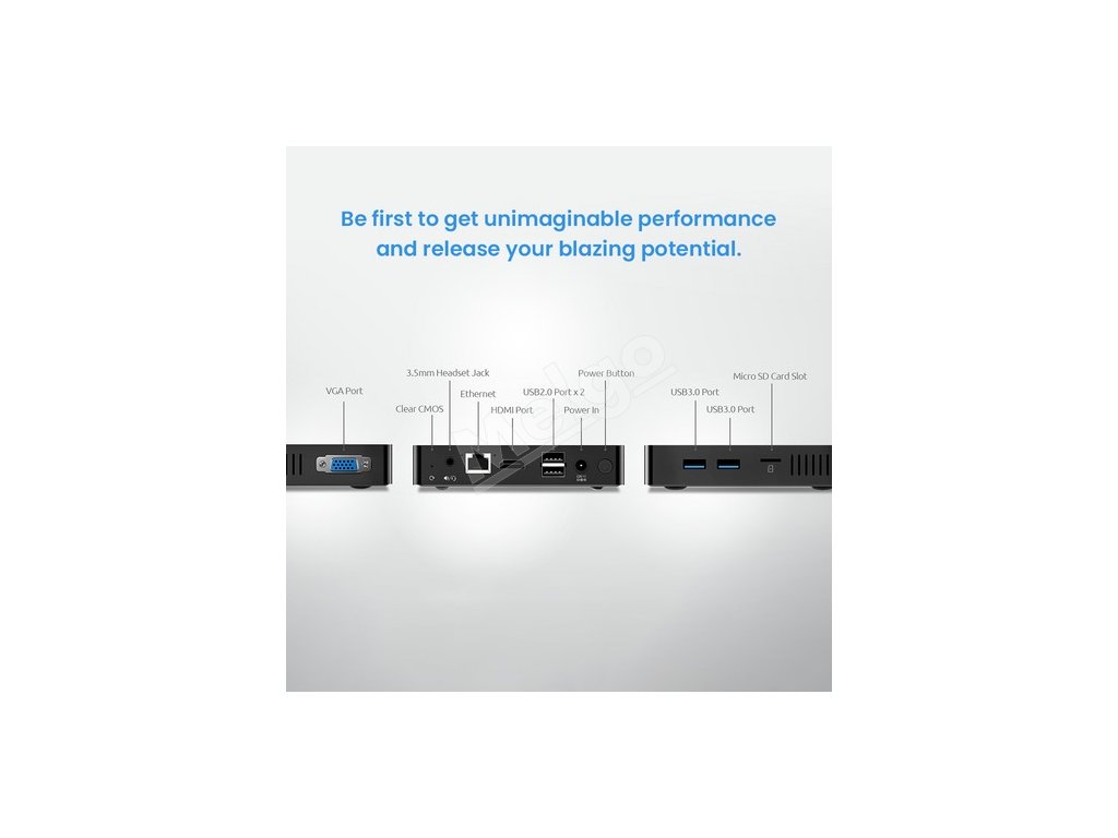 Vybavený obrazovými výstupmi HDMI a VGA podporuje pripojenie dvoch monitorov súčasne. Štyri porty USB (2 x USB 3.0 + 2 x USB 2.0), sieťový port RJ45, rozhranie Bluetooth 5.0 a dvojpásmové pripojenie Wi-Fi (2,4 GHz/5 GHz) spĺňajú rozmanité potreby pripojenia. Je ľahko kompatibilný s projektormi, monitormi a tlačiarňami.