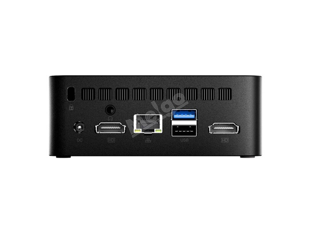 Mini PC má množstvo portov na pripojenie viacerých zariadení. K dispozícii máte 3 porty USB 3.0, 1 port USB 2.0, 1 port LAN, 1 konektor DC a štandardný 3,5 mm konektor pre slúchadlá. To umožňuje pohodlné pripojenie ďalšieho príslušenstva, ako je klávesnica, myš, externý disk alebo reproduktory.