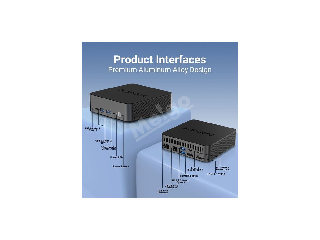 Mini PC MINIX N512 podporuje štandardy pripojenia novej generácie vrátane WiFi 6 (802.11ax), Bluetooth 5.2 a dvoch portov LAN (1x2,5G + 1G), ktoré poskytujú spoľahlivý a vysokorýchlostný sieťový výkon. Obsahuje tiež viacero portov USB 3.2 Gen 2, USB-C a Thunderbolt 4 pre maximálnu kompatibilitu periférií a rozšírenie pripravené na budúcnosť.