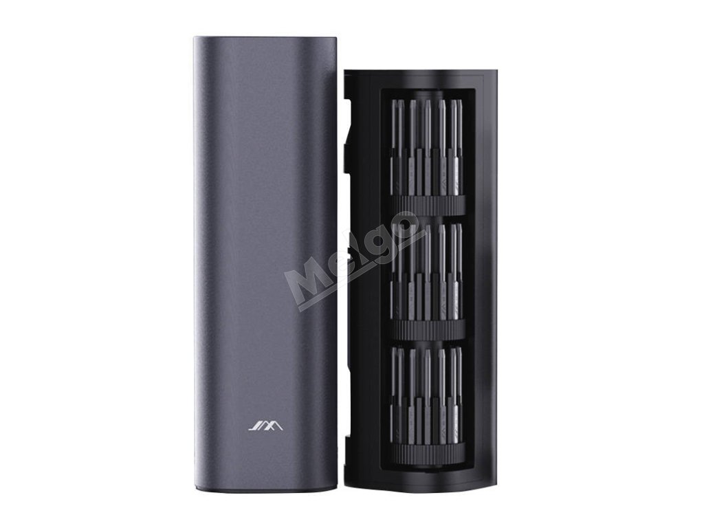 Súprava JM-GNT56 obsahuje až 42 rôznych bitov, 3 typy pinziet z nehrdzavejúcej ocele, 2 rukoväte, kľúč na vyťahovanie SIM kariet, nástroj na podrezávanie kovov, magnetizér a demagnetizér a robustné puzdro. Súprava skrutkovačov sa bude výborne hodiť napríklad pri oprave telefónu, údržbe modelov alebo iných zariadení.