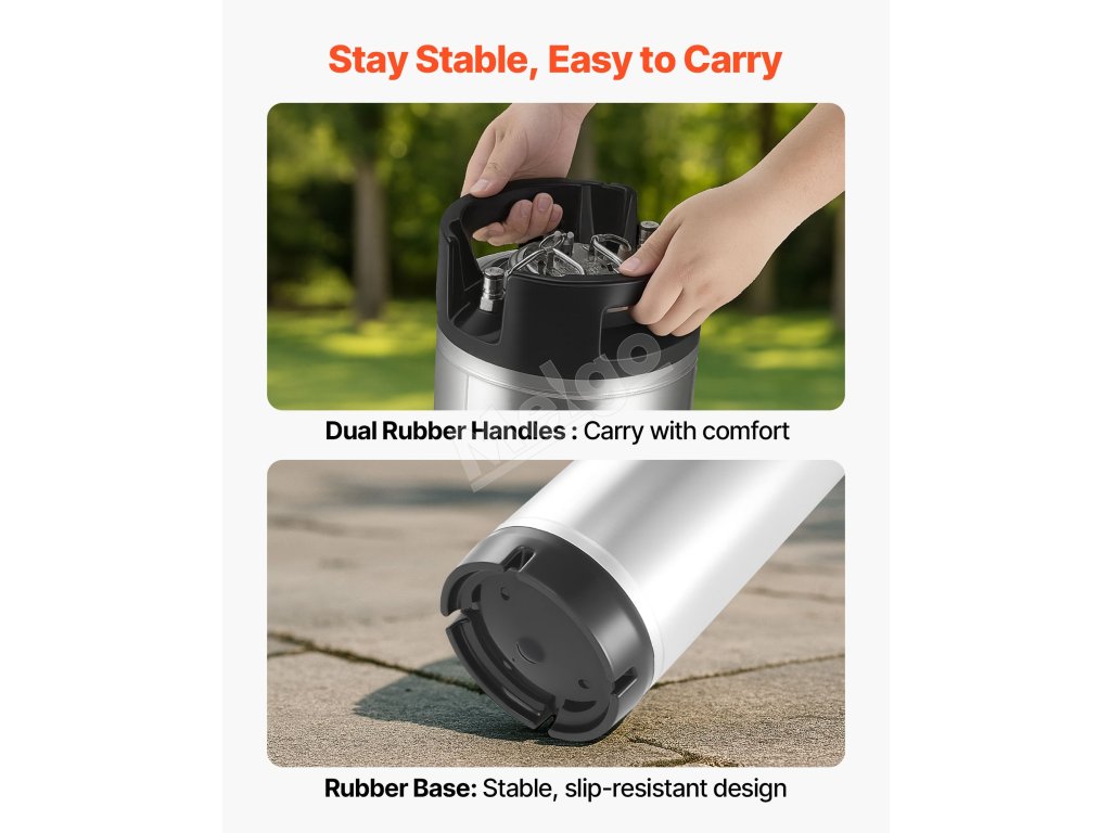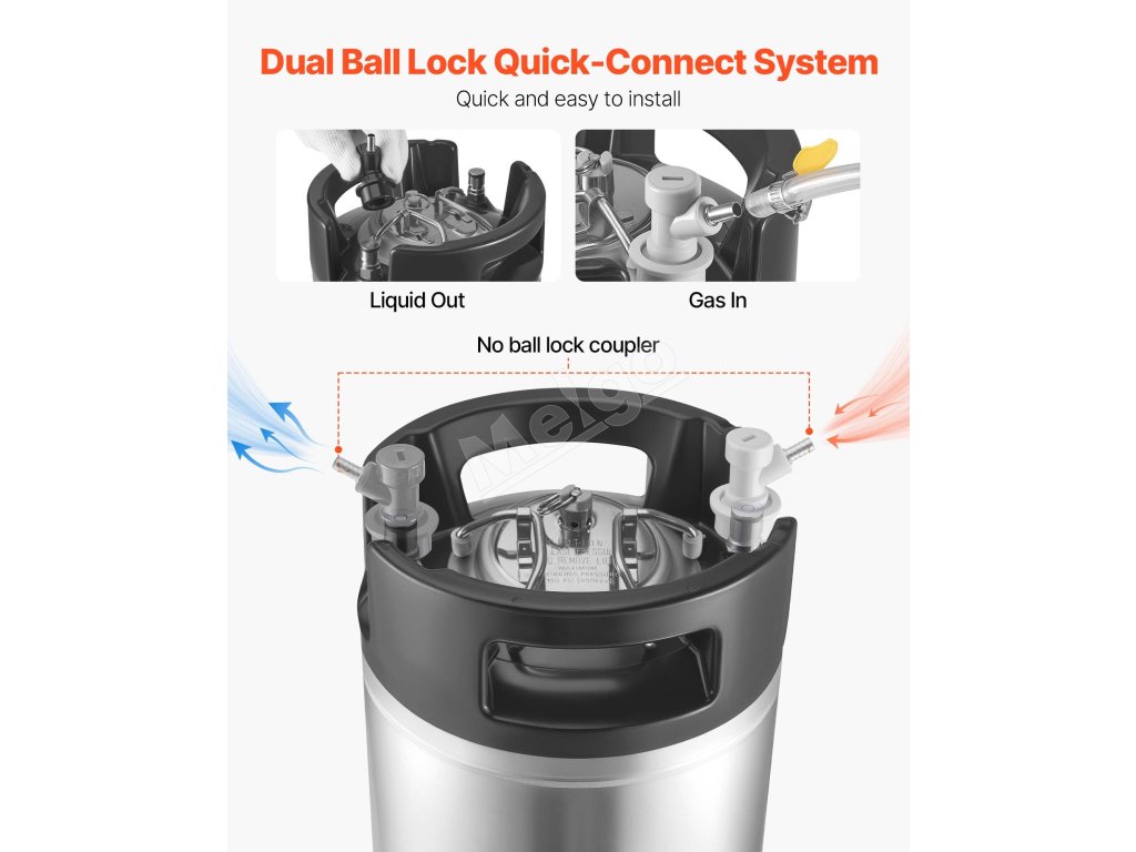 Tento 5galónový (19l) sud s guľovým uzáverom 2 ks je určený pre domácich pivovarníkov a výrobcov nápojov a ponúka rýchle nastavenie vďaka dvom rýchlospojkám. Ideálny na skladovanie piva, studeného moku alebo sódy pod stálym tlakom. Má telo z nehrdzavejúcej ocele 304, ktoré podporuje časté používanie doma, v kaviarňach alebo na podujatiach.