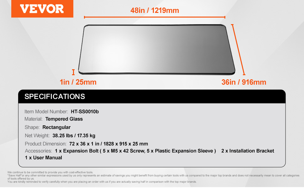 | Rozmery výrobku | 72 x 36 x 1 palec / 1828 x 915 x 25 mm |