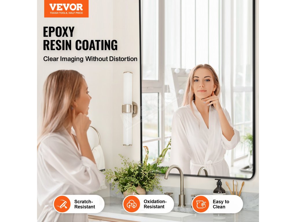 Ľahký rám zrkadla, vyrobený z vysokokvalitnej hliníkovej zliatiny, je odolný voči korózii a zachováva si lesk aj vo vlhkých priestoroch, ako sú kúpeľne, a ponúka dlhotrvajúcu odolnosť s elegantným a moderným vzhľadom.