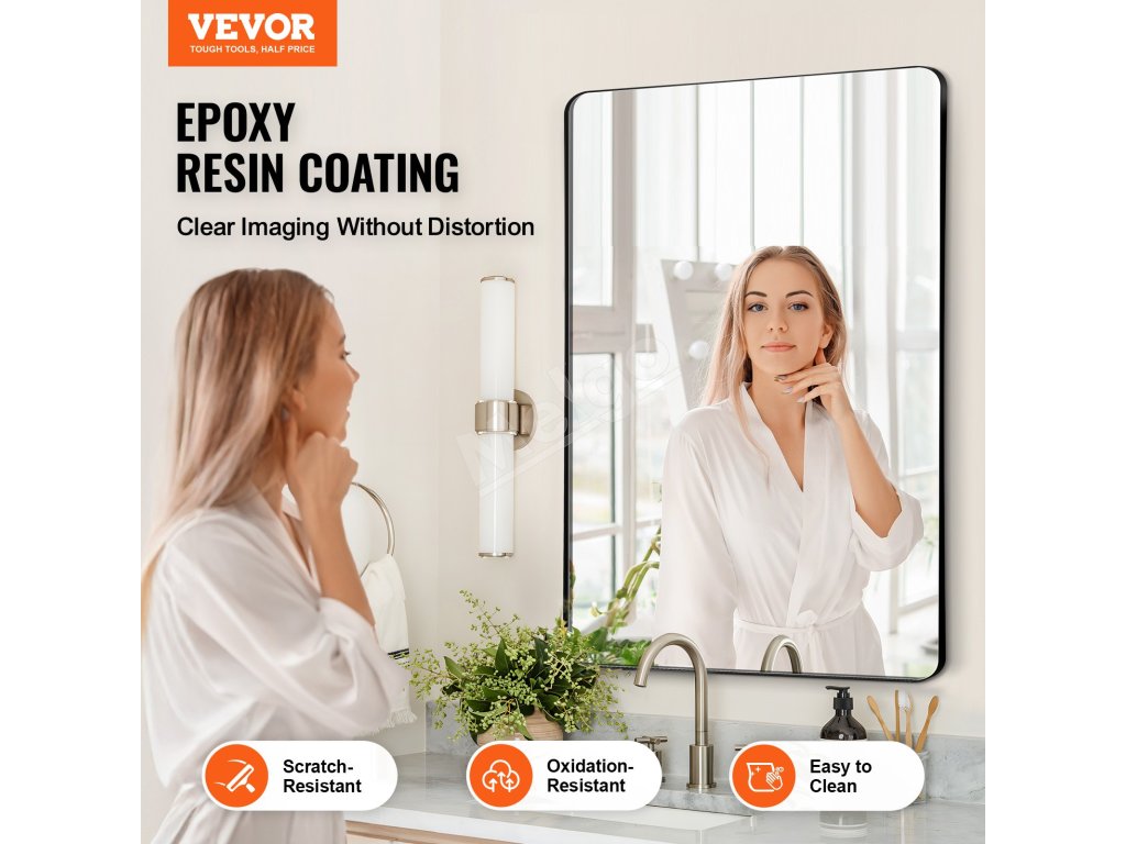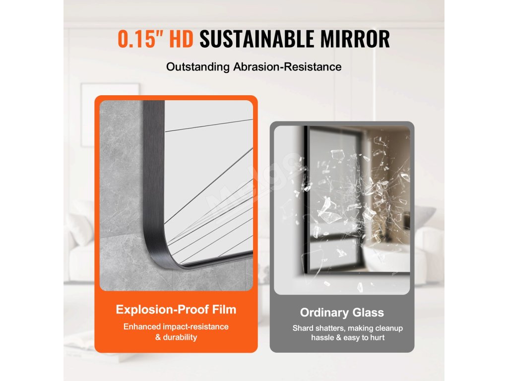 Ľahký rám zrkadla vyrobený z vysokokvalitnej hliníkovej zliatiny je odolný voči korózii a zachováva si lesk aj vo vlhkých priestoroch, ako sú kúpeľne, a ponúka dlhotrvajúcu odolnosť s elegantným a moderným vzhľadom.