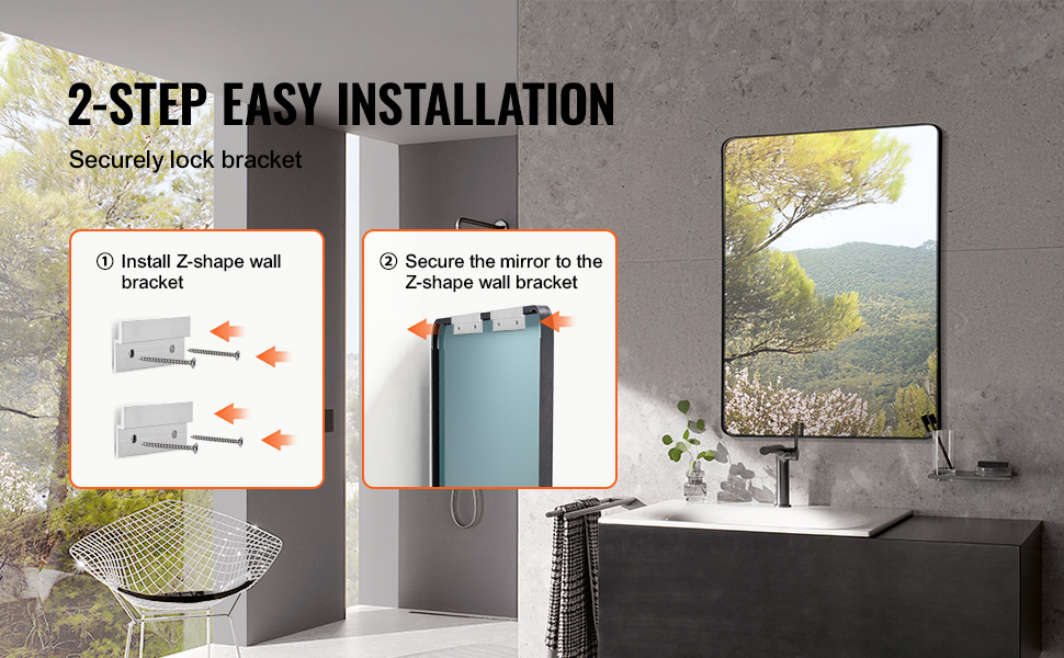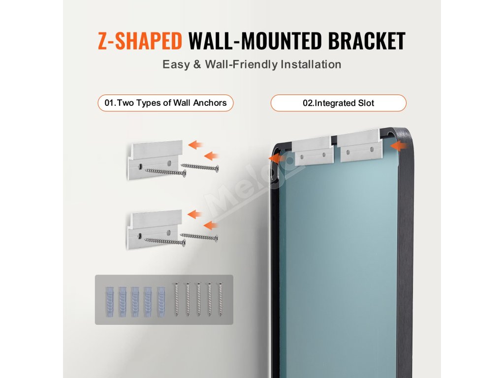 Nástenný držiak tohto nástenného kozmetického zrkadla v tvare písmena Z zjednodušuje inštaláciu, čím minimalizuje potrebu predvŕtaných otvorov alebo obavy z poškodenia steny. Stačia dva jednoduché kroky a zrkadlo sa bezpečne pripevní na miesto.
