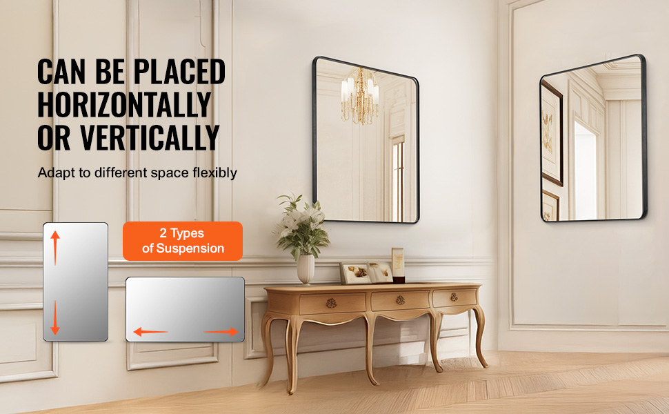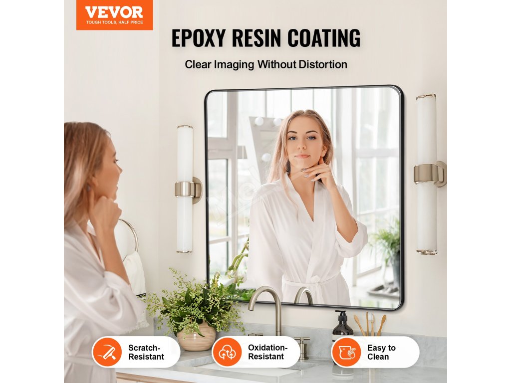 Ľahký rám zrkadla vyrobený z vysokokvalitnej hliníkovej zliatiny je odolný voči korózii a zachováva si lesk aj vo vlhkých priestoroch, ako sú kúpeľne, a ponúka dlhotrvajúcu odolnosť s elegantným a moderným vzhľadom.