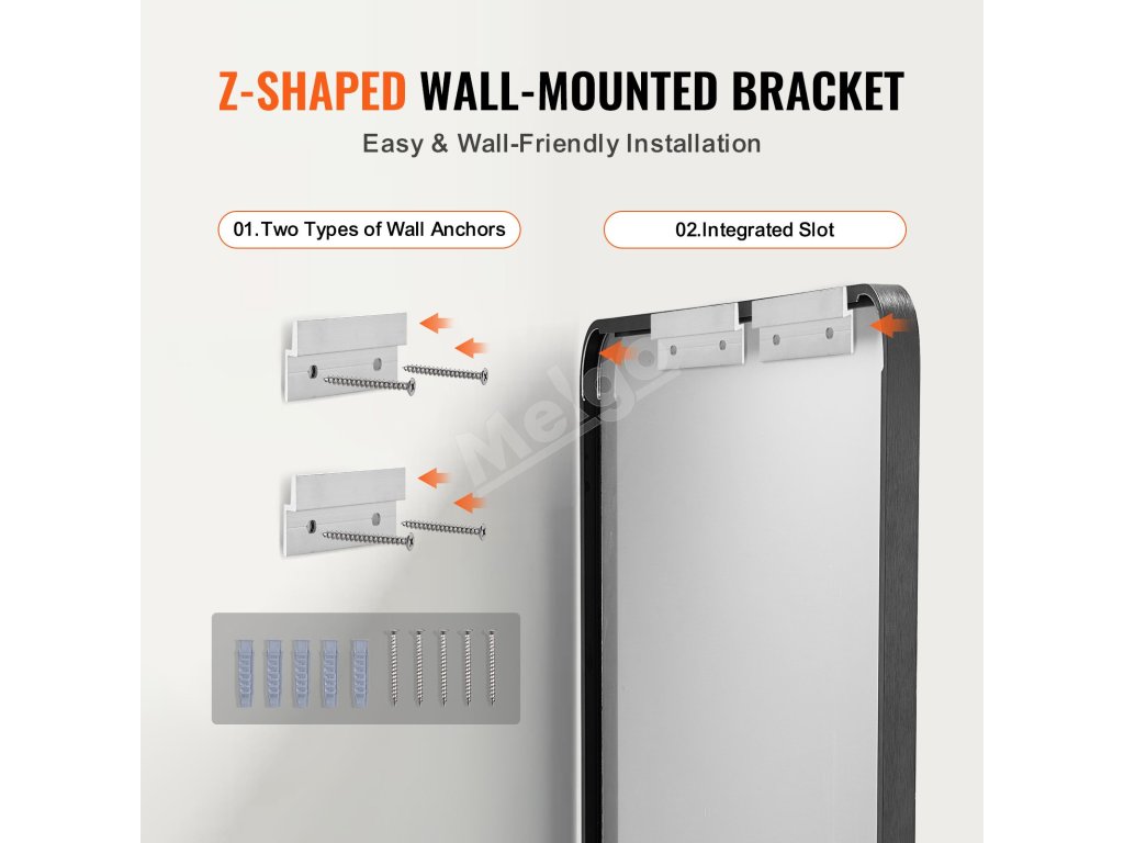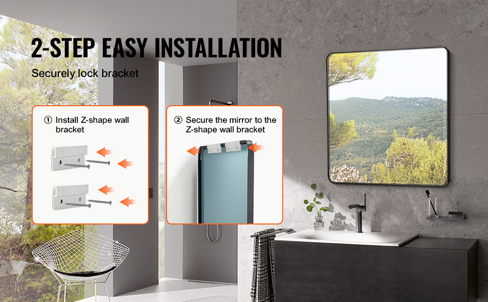 Nástenný držiak tohto nástenného kozmetického zrkadla v tvare písmena Z zjednodušuje inštaláciu, čím minimalizuje potrebu predvŕtaných otvorov alebo obavy z poškodenia steny. Stačia dva jednoduché kroky a zrkadlo sa bezpečne pripevní na miesto.