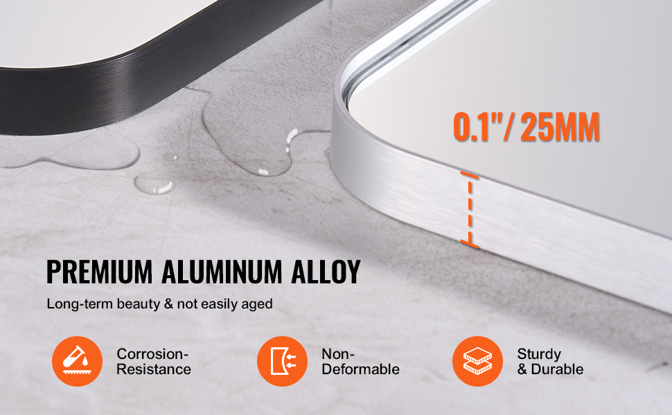 Ľahký rám zrkadla, vyrobený z vysokokvalitnej hliníkovej zliatiny, je odolný voči korózii a zachováva si lesk aj vo vlhkých priestoroch, ako sú kúpeľne, a ponúka dlhotrvajúcu odolnosť s elegantným a moderným vzhľadom.