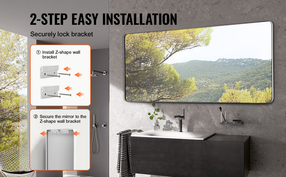 Nástenný držiak tohto nástenného kozmetického zrkadla v tvare písmena Z zjednodušuje inštaláciu, čím minimalizuje potrebu predvŕtaných otvorov alebo obavy z poškodenia steny. Stačia dva jednoduché kroky a zrkadlo sa bezpečne pripevní na miesto.